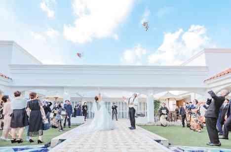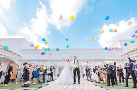 おふたりがアールベルアンジェ名古屋へご見学いただくきっかけとなった【約100坪のプール付きリゾートガーデン】を使って憧れのバールーンリリースを行いました★コロナ禍で行う結婚式ということもあり、ガーデンでの演出は「密」を避けることもできると、ゲストの方からも好評でした!