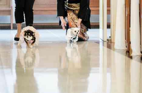 新婦様の実家で飼われているチワワ2匹も一緒に挙式に参加してほしい!そんな新婦様の想いから大切なご家族のワンチャンに「リングドック」という重要な係に任命!何度もリハーサルをしに足を運んでくださり、当日も無事成功!ゲストの方からも「可愛い!」と、とても好評でした。リングドックの後はワンチャンも一緒に挙式に列席をし、おふたりの挙式をしっかりと見守っていただきました。