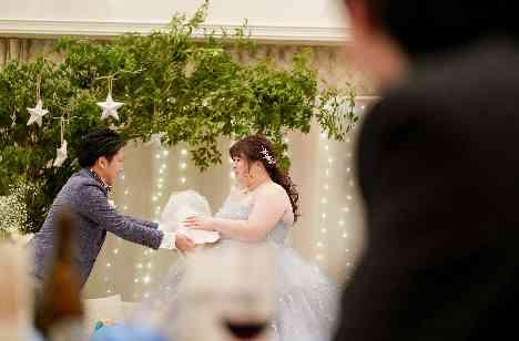 結婚式の1週間前、新郎様から「新婦にサプライズがしたいんです」との相談を受けて残り僅かな時間の中で担当プランナーと新郎様とでサプライズを考えました!エンディングの前に司会者より「実はここで新婦様へ想いを伝えたいという方がいらっしゃいます・・」とのアナウンス後に新郎様からお手紙の朗読と新婦様にゆかりのあるチューリップの花束をプレゼント★新婦様もとても喜んでくださりサプライズは無事大成功!