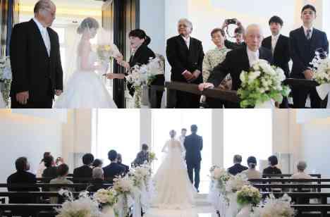 家族でゆったりと挙式を行いました。キリスト教式で、新郎新婦が入場する前にチャペルムービーを流してもらいました。普段なかなか両親に言えない感謝の気持ちをその場を借りて、伝えるとことが出来ました! 理想だった、ペールダウンとエスコートも両親にしてもらい、良かったです。 フラワーシャワーをして、家族に見守られながら笑顔で退場しました。