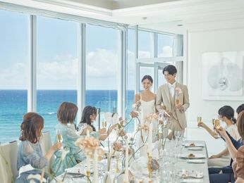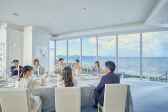 世界遺産の宗像大社や宮地嶽神社でご親族のみで挙式をされた後は、オテルグレージュに移動し最高なロケーションをのぞむレストランでお食事会を。神前式とセットで全てサポートさせていただきます。