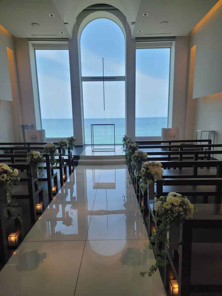 当日貸切で利用でき、海の近くということもあり 特別感のある結婚式ができる雰囲気。チャペルも素敵でした。