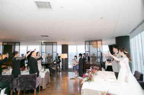 最上階にある「レストランKEI」での披露宴。 リラックスしてお過ごし頂けるようお席配置にもこだわりました。 ドリンクも豊富にご用意し、普段からよくお酒を楽しむ新郎新婦様ならではのおもてなしを◎ お子様ゲストの「乾杯」には、大人顔負けの立派な姿に胸があつくなる瞬間も。毎年お誕生日を祝いあっているご友人へのサンクスバイトやスピーチなど、内容もたっぷりでどの瞬間も笑顔が絶えないパーティーでした。