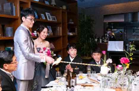 夫婦ふたりの思い出も増やしたい!親しいご友人・これから仲良くしたいお互いのご友人とも楽しい時間を過ごしたい!そんなお気持ちでいらっしゃったおふたり。 親しいご友人と大切なご親族を招いての ウエディングパーティーは おもてなしのお料理を愉しみながら 今までの感謝と これからもお願いします そんな気持ちをこめて…