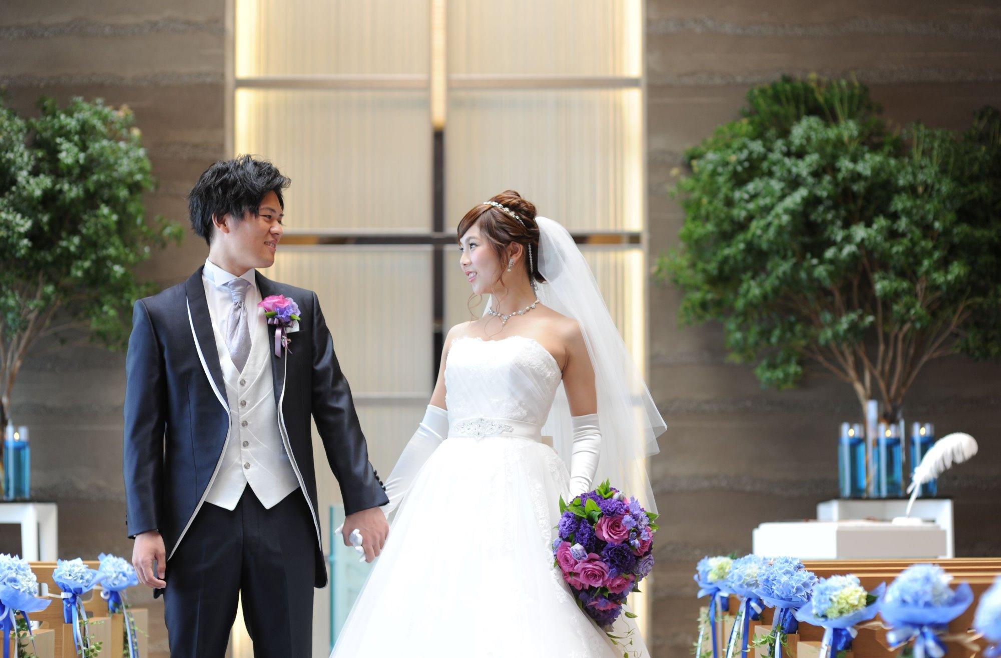 サムシングブルーの空間で誓う結婚式