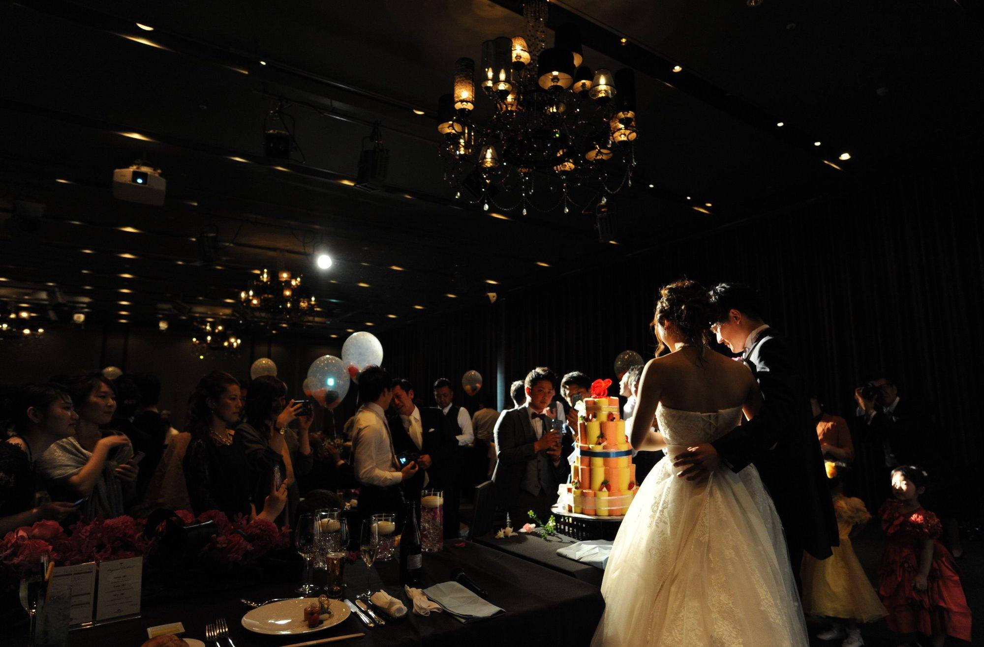 プロジェクションマッピングでスタートした披露宴。ウェディングケーキ入刀で登場したケーキは、なんとビックなロールケーキタワー!見た目も華やかなケーキは、ゲストの皆様も大注目でした!他にもサプライズでの中座や新郎ご友人による余興など、大盛り上がりの披露宴となりました。