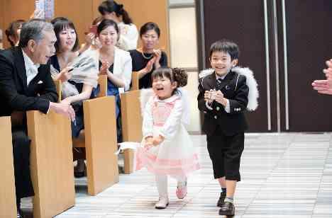 天使の羽根を付けてリングピローを運んでくれたのはご新婦様の甥っ子&姪っ子。嬉しそうに満面の笑顔で大切なリングを届けてくれました。 ゲストの皆様に受付でお名前を書いていただいた芳名カードを差し込んで、オリジナルの誓約書の完成です。ガーデンセレモニーには手作りのスターシャワーを使用しました。