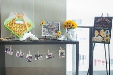 結婚式でお子様の性別を発表すると話していた新郎。ウェルカムスピーチで性別を発表され、父になる喜びと決意を感じました。 新婦にも初めてお会いする方もいらっしゃったので、しっかりと新しいご家族様のお披露目ができました。ウェルカムスペースには家族3人おそろいの白いスニーカーを飾りました。新郎実家が飲食店を経営されており、大アサリが名物なので席札は大アサリを使って新婦が手作りされました。