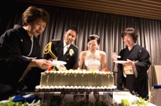 アイシングクッキーで作られた、おふたりのオリジナルキャラクターがのったウエディングケーキ。入刀後には、このアイシングクッキ-を使ってファーストバイトを行いました。サプライズとして、ご両家のお母様からおふたりにケーキを食べさせていただくラストバイトの演出も取り入れました。恥ずかしそうにしながらも、楽しそうなおふたりとお母様から家族愛が伝わり、とても和やかなご結婚式となりました。