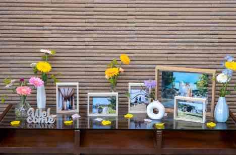 感動したり笑ったりするポイントをあえて作らず、ゲストがそれぞれゆったりと思い思いの感情で過ごしてほしくてこのテーマにしました。お花が沢山の素敵な会場で美味しい料理やケーキを食べて、「いい日だったなぁ」と思ってもらえるよう準備を進めました。 結果、当日はわたしたちの演出ではなく、家族や友人のスピーチやコメントなどまわりの方々からのあたたかい思いで会場全体が感動の涙に包まれて、とてもいい時間でした。