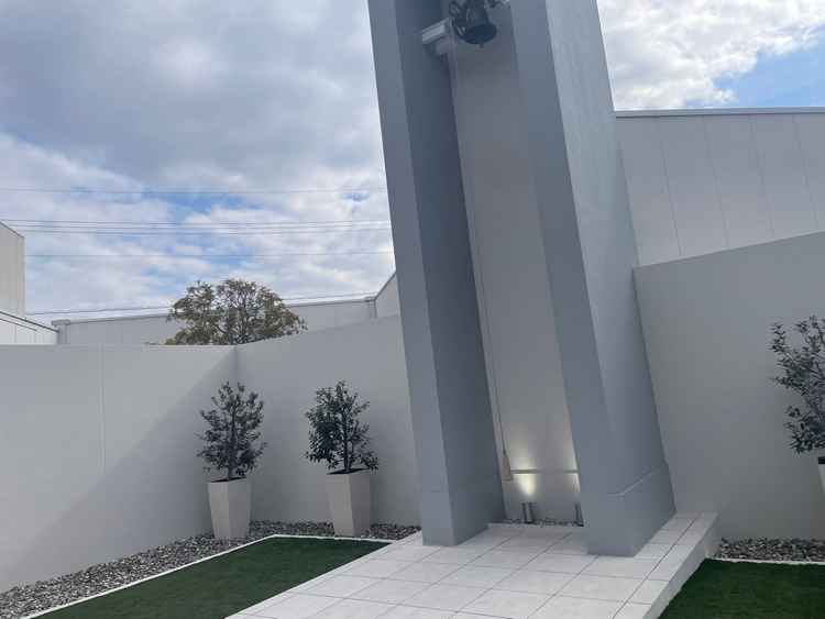 高さ8メートルの外壁を流れるアクアストリームが魅力的