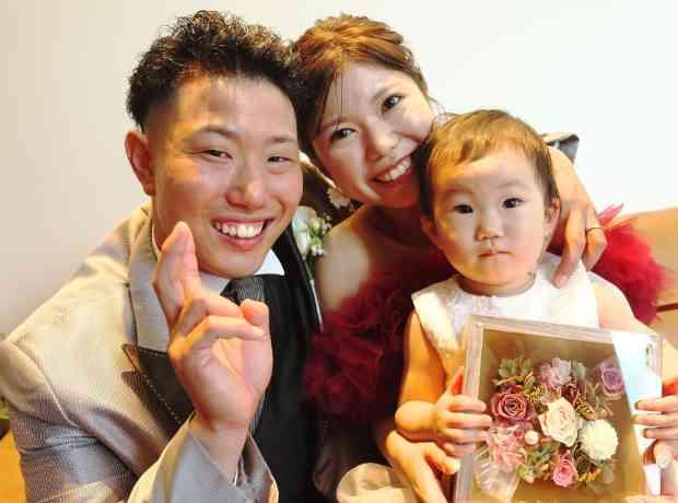 子育てや仕事をしながらの短い期間で準備をしたので、すごくあっという間に結婚式がきました。 でも打ち合わせも準備期間も、みんなの笑顔を思い浮かべつつワクワクしながら楽しく準備することができました! 結婚式当日はあいにくの雨でしたが、ブーケトスや集合写真なども別の場所で時間をとっていただき、無事に行うことができました。