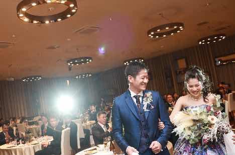 披露宴ではサンキューバイト、中座の呼び出しを行い、ゲストの皆さん全員に楽しんでもらえるよう考えました。また、自分好みにしたかったため、フェザーシャワーや、メニュー表はトレーシングペーパー、エスコートカード、フォトブースはすごくこだわりました。また、音楽はお互い三代目さんが大好きなので、三代目さんで埋め尽くしました。レーザーの演出をすることで、普段行っている三代目さんのライブ感を出しました。