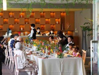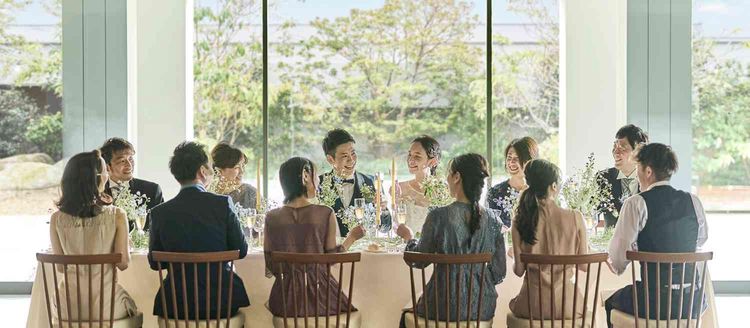 ご家族様・ご親族様のみだからこそ、堅苦しい雰囲気ではなく全員がリラックスできる空間をご提供いたします。 自然に囲まれたリゾート空間とガラス張りで明るい中でお過ごしいただくカジュアルパーティで最高の思い出を。