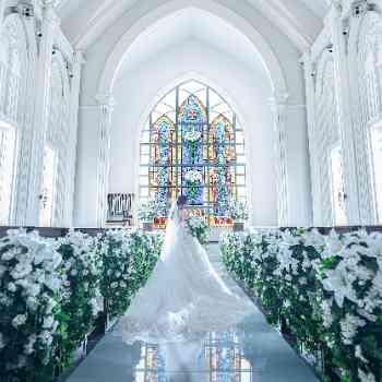 - 花柄のステンドグラスが印象的なチャペルは、教会式・人前式どちらでもOK!共に生演奏にてご案内します。