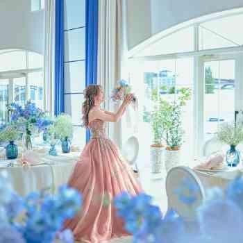 約5000坪の広大な敷地に広がるのは、爽やかな地中海リゾートを思わせる非日常空間。ステンドグラスの大聖堂や貸切邸宅とまさに花嫁の理想がつまった場所で、階段入場やバルーンリリースなど憧れの演出も叶います