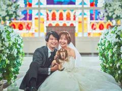 ワンちゃんも家族の一員♪ わんちゃんもドレス姿を見たいはず!! 迎賓館シェーナではワンちゃんもお連れ頂いて御一緒にお写真を撮影することもできます。 素敵な新郎新婦様を是非わんちゃんも見てもらおう♪