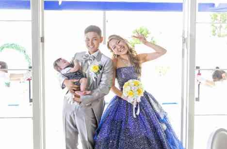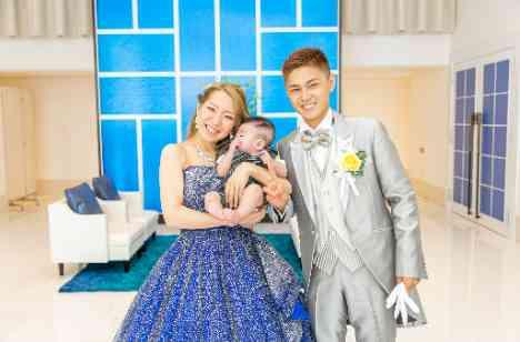 おひらき後におふたりの大切なお子様とも写真撮影をしました♪ご新婦様に抱かれて幸せそうに眠るお子様が夫婦円満を物語っています。1日とてもおりこうさんにお過ごしいただいたのでちょっと疲れたかな…?という表情でしたが、宝物を抱くおふたりの幸せそうな笑顔を見ると結婚式を心から楽しんでいただけたことがわかる素敵なお式となりました。