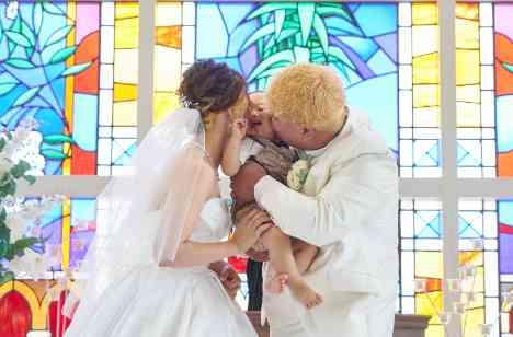 おふたりの大切なお子様に大役のリングキッズをお任せしました! ラジコンカーに乗ったお子様はどこか不安げなご様子でしたが、無事におふたりの元につくととっても笑顔になりました♡ お子様からリングを受け取り指輪交換の後、誓いのキスはおふたりからお子様へ♡ おふたりからお子様への愛に満ち溢れた瞬間となりました♡