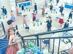 幼い頃からずっと憧れた感動のワンシーン! ゲストの祝福を感じながら、感動的な入場を迎える 会場は高い天井と大きな窓で開放感抜群!!ブルーをコンセプトにした会場には青いシャンデリアが設置され、披露宴を上品に飾ります