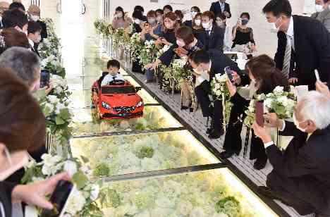 コロナ禍でゲストの皆様にお子様をお披露目する場がなかったとお話してくださったおふたり。 挙式ではお子様がお気に入りの車に乗って、新郎新婦様の元に指輪を届ける大役を務めあげました。 その様子に会場内は撮影会のようなアットホームな雰囲気になり、笑顔に包まれた時間となりました。 またアフターセレモニーではゲスト参加型のブーケプルズやお写真撮影などをお楽しみいただきました。