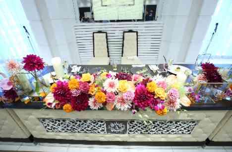 披露宴はおふたり手作りのオープニングDVDでスタート♪ 新婦様の好きなオレンジや明るい色のお花をベースに 小物やキャンドルをあわせてメインイメージを作りました。 歓談の時間にはお気に入りのメインテーブルで 写真が沢山とれるよう司会よりアナウンスを入ることによって、 多くのゲストの皆様にメインテーブルまでお進み頂きました。