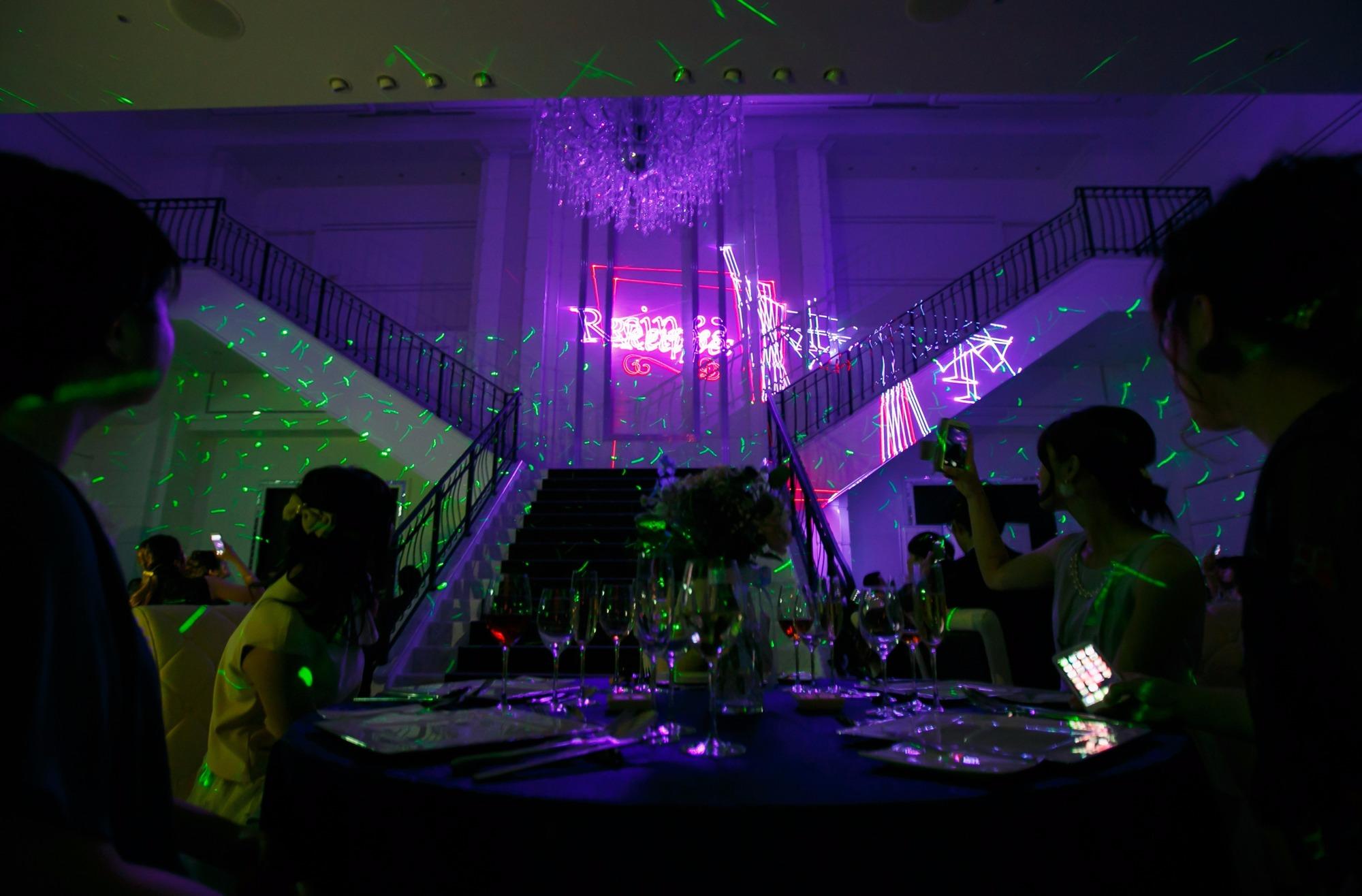 メイン出演【レーザー&キャンドル】レーザー入場から始まりご新郎様がご新婦様に膝まづき、ガラスの靴を...その後おふたりで大階段を下りられメインのキャンドルをおふたりで灯します♡ライトダウンした室内に光が灯り会場の雰囲気を演出。ゲストの方も素敵な演出に感激されておりました。