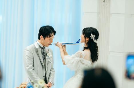 ファーストバイトの際に飛行機の模型を使いたいと目をキラキラさせながらお話いただいたTAKAHIROさんと、加えて私も大好きなチンアナゴのマグネットをつけたスプーンでバイトしたいというARISAさん♡ お二人の大好きを詰め込んだファーストバイトはゲストもスタッフも笑顔包まれた瞬間でした! その場にいるみんながお二人の虜となってしまうほど、お二人らしさをふんだんに詰め込んだご結婚式でした!