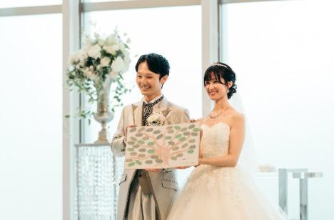 手先が器用なお二人はウェディングツリーもお手作り! ゲスト参加型の結婚証明書にお二人も署名をし 正真正銘の世界に一つだけの結婚証明書となりました。 また、大階段ではARISAさんによるお菓子トスとTAKAHIROさんによるバドミントントス! 挙式ではまだ緊張気味だったお二人もゲストからの祝福の声を受け、少し緊張がほぐれた様子でした♡