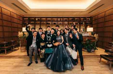 ご披露宴中終始ホワイエには「ヨンスジュン写真機」を設置! レシート型のお写真というレア感もあり、特に小さなお子様が興味を示し たくさん素敵なお写真を残していただきました! また、新郎様たってのご希望で再入場時にお衣装(官服)に併せてサングラス&コロナビールを装備し、トップガンをモチーフに入場され新郎様の職場の方はお盛り上がりとなり新郎様もご満足された表情でした!