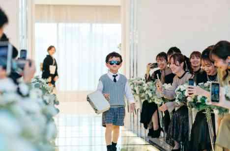 新婦様たっての希望により入場曲は「リベラ」 ご見学時にこの楽曲がながれていたのも当館に決めていただいた理由のひとつでした! 挙式中盤でのリングボーイに関しては新郎新婦の希望により ジュラルミンケースとサングラスをかけエージェントの用に登場! ゲストの方も大盛り上がりで無事挙式は結びました