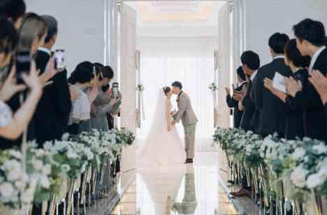 ご新郎様はお母様よりジャケットセレモニーをしてもらいご新婦様はマザーズロードを歩きお父様とバージンロードを歩みご新郎様のもとへ。挙式も終盤、本来は祭壇で行うウェディングキスをご新婦様が恥ずかしいということで本来のタイミングでは頬にキスをされ最後の退場のタイミングで改めてクロージングキスをしていただきました!ゲスト様も大盛り上がりで挙式を結びました!