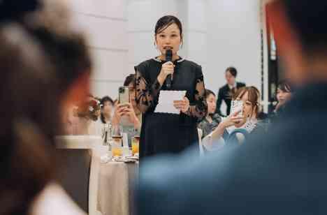 友人スピーチではなくスピーチリレーという形で高砂横にご登場いただかず、友人の方にはあえてご自身の席からお話しいただきそれぞれのゲスト様からそれぞれの時代の新郎新婦様との楽しい思い出をお話しいただきました! お時間との戦いでございましたが無事お時間内に結んでいただき作戦通り皆様にお話ししていただけました。
