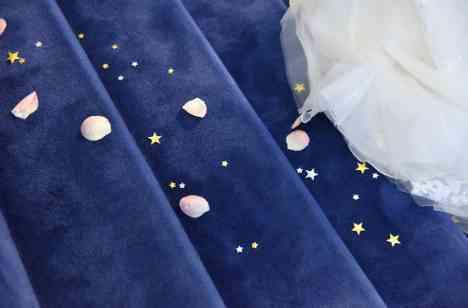 ご新婦様のご友人様のご子息様よりリングボーイのお手伝いをしていただきました。 お子様にありがとうの言葉と共に頭をなでなで。 アフターセレモニーのフラワーシャワーには キラキラ光る星をミックス!ブルーの絨毯にとても映えます。