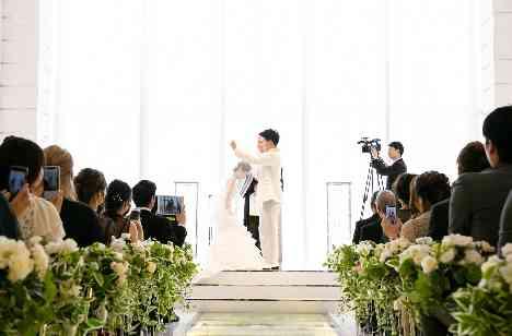 挙式では厳かな雰囲気が流れ、静かにおふたりを見守る皆様の表情がとても印象的でした。 また、ご新婦様の姿勢が非常に美しく、皆様が見とれていた瞬間でもございました。 しかし、誓いのキスではご新婦様のリップがご新郎様の口に思いっきりついてしまうというハプニングもあり、会場では一気に笑いがおき、ご新婦様含め、皆様の笑いも一時止まらず、おちゃめなご新郎様らしく照れくさそうにされていたことを覚えています。
