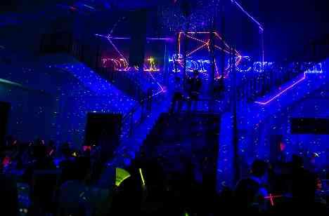 こだわりつくした再入場では、入場前にゲストの皆様にサイリウムをつけて頂いた状態で、レーザー演出&ご新郎様の歌いながらでのご入場。ご新婦様はお得意のバトントワリングをされながら入場し、ご新婦様のバトン仲間の皆様も一緒に大階段を大いに使いフラッシュモブ。再入場という<大演出>を行っていただきました。 会場はまさに、ライブ会場!会場全体が大いに盛り上がり笑顔にあふれたパーティでした♪