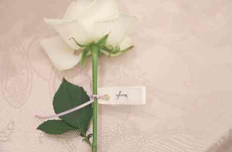 ゲストにスポットが当たるようにとお色直し後の入場では、 ダーズンローズセレモニーの演出を取り入れられました。 ゲストの方へ「感謝・誠実・幸福・信頼・希望・愛情・情熱・真実・尊敬・栄光・努力・永遠」12の言葉の意味をそれぞれ持つ白いバラを。その言葉にピッタリなゲストをお二人に選出して頂き、 とても感動的な雰囲気でゲストへ12本のバラをお渡しました。お二人の人柄が表れていたご結婚式でした。