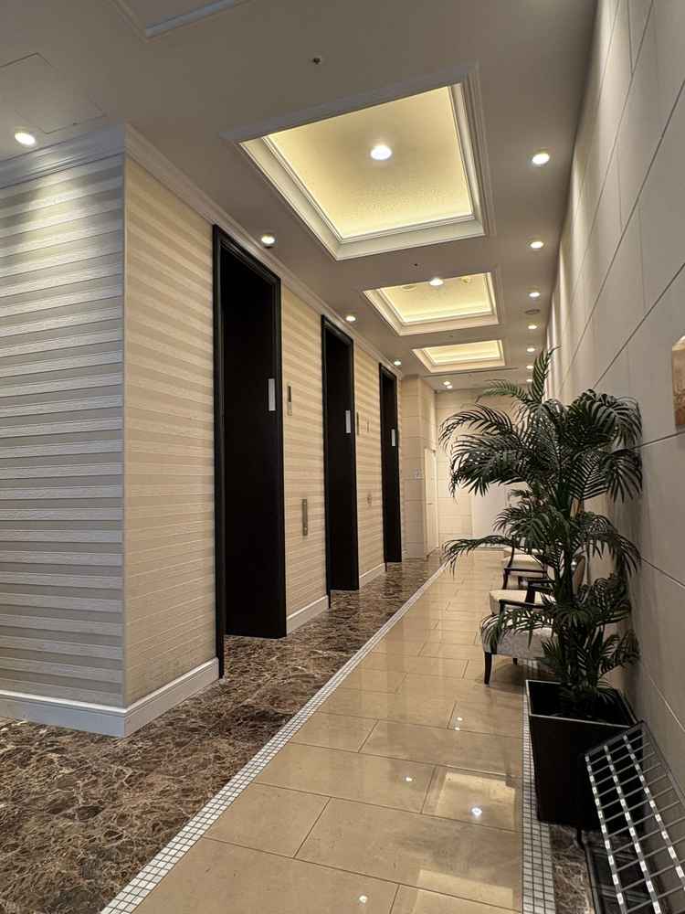 各階に御手洗や喫煙所があり、エレベーターもスムーズでゲストの事を考えられた設備だと思います。広々とした通路も印象的でした。