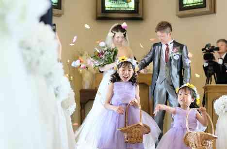 ステンドグラスが美しいチャペルでの挙式は、ソロシンガーのアカペラが印象に残りました。好きな曲をリクエストできてよかったです。またリングボーイやフラワーガールと子ども達の活躍で和やかな雰囲気で行うことができました。挙式後は巨大クラッカーを持ってゲストの前に登場し、大階段上で豪快に鳴らしてゲストにサプライズしました!
