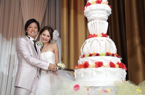 大きなウエディングケーキは迫力満点!!ゲストから歓声が上がるようなインパクトのあるうえでぃんぐけで、ふたりらしさを。会場全体が華やかになり、ゲストの印象にも残ります!!