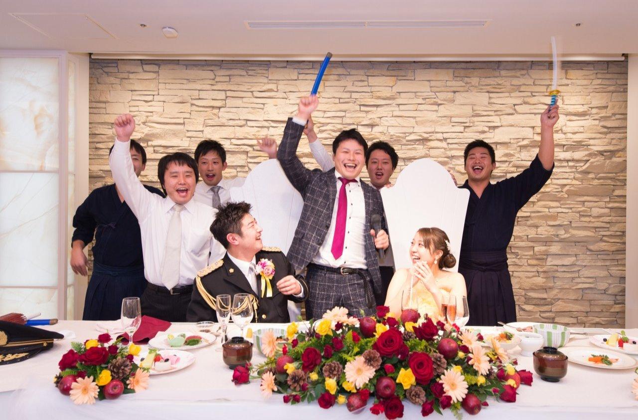披露宴で演出を取り入れつつ、余興の時間はしっかりと取りました!お二人を祝福するゲスト様の余興に大盛り上がり♪