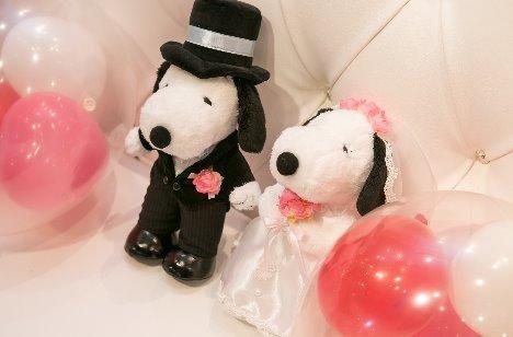 スヌーピーが大好きなおふたりは挙式も披露宴もいろいろなアイテムにスヌーピーを取り入れました♡ Wグッズから席次表、親御様のプレゼントまで♡ スヌーピーが大好きなお二人らしい ゲストの笑顔がたくさん溢れる素敵な結婚式に♡