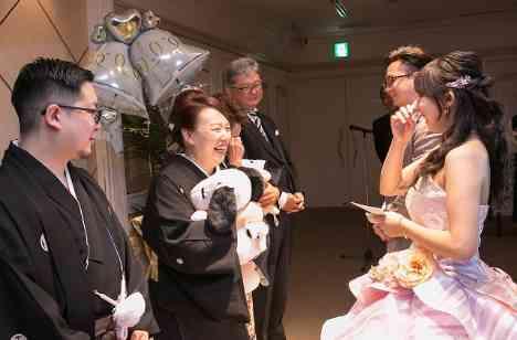 親御様へのプレゼントは、スヌーピーのウエイトドールを*☆ 貰った親御様はお二人の感謝の気持ちに嬉しくて涙しました。 また最後のお見送りにはスヌーピーのプチギフトをゲストにプレゼント♪お二人らしいプチギフトに最後まで笑顔が溢れていました☆