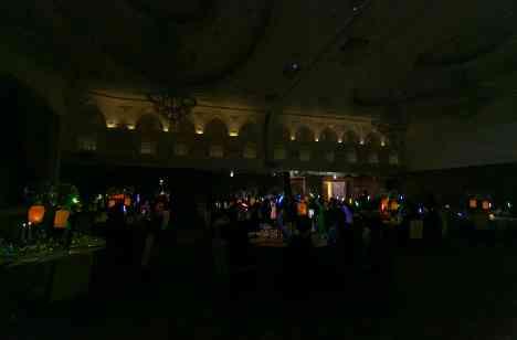 感動的な挙式後、披露宴ではケーキ入刀やご友人からもスピーチをいただいたりと、おふたりらしい和やかな時間が過ぎていきました。そしてお色直し後、おふたりは再入場となりますが、ここで当館の人気の演出のひとつであるランタンバルーンをご用意。全天候型の会場なので、部屋を真っ暗にすることが可能です。また合わせてドレス色当てクイズで、皆様にペンライトもつけていただきまるでライブ会場のような雰囲気となりました!