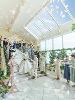 挙式が終わったら、青空の見えるチャペルガーデンでゲストからフラワーシャワーの祝福を受けられる。ガラス張りの天井と白い石造りの大階段。あふれる笑顔と祝福の言葉。そして清らかに舞う花びらが、ふりそそぐ自然光とともにおふたりを優しく包み込む幸せ空間。