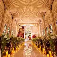 【格式高い大聖堂が魅力】イングランドの教会から移築したステンドグラス、繊細な彫刻の天井、光り輝く純白のバージンロードは圧巻。