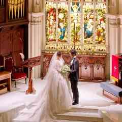 【格式高い大聖堂が魅力】イングランドの教会から移築したステンドグラス、繊細な彫刻の天井、光り輝く純白のバージンロードは圧巻。