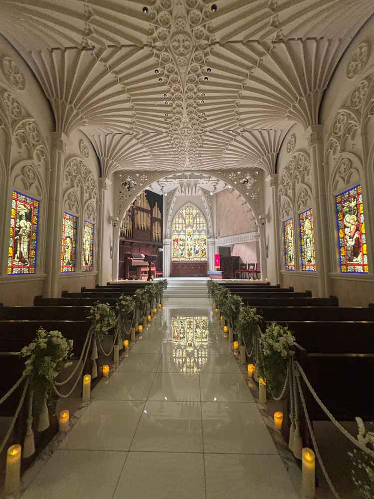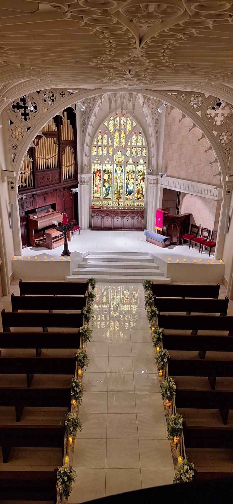 チャペルのステンドグラスが綺麗で雰囲気が良かった。チャペルのライティングで様々な雰囲気に変更出来て凄かった。
