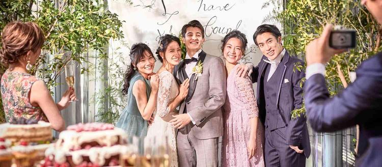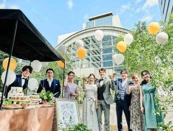 挙式後のブーケセレモニーやフラワーシャワーといった王道の演出は、もちろん緑が映える屋外のガーデンで! おふたりとゲストとの集合写真も楽しめる開放的な空間。 またウェルカムパーティー時には生演奏やドリンクなどもご用意
