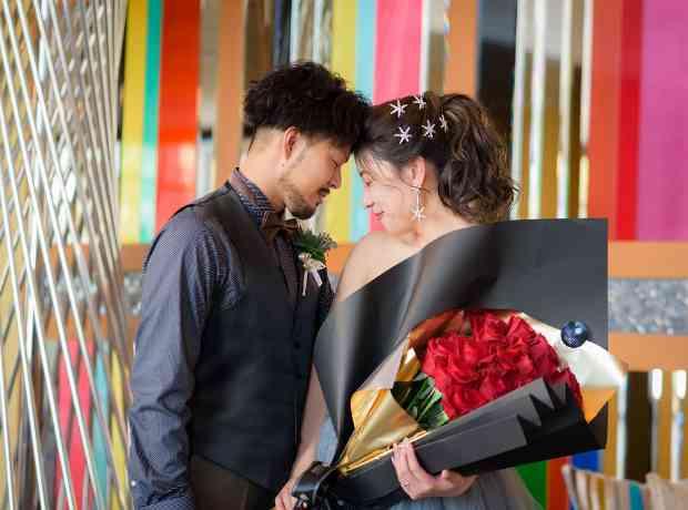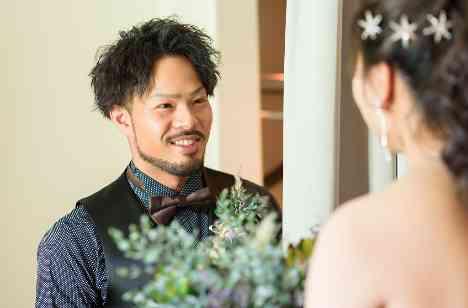 新婦様がずっと新郎様に着るドレスを隠して、当日見てもらうことをサプライズ準備♪新郎様も、そういえば知らなかったかも…。とのことで、プランナーさんと一緒にどのタイミングで新郎様に仕掛けるかを計画♪準備中に呼び出して、カーテン越しにサプライズ内容を伝えると、ちょっとそわそわした新郎様。最後には「可愛いね♥」照れながら伝えていました。